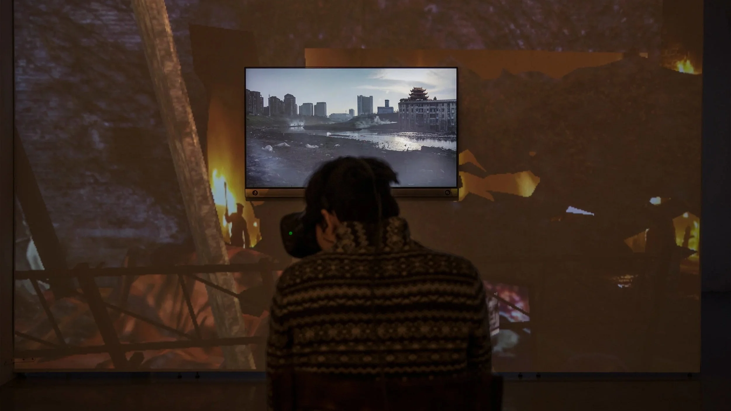 I made a VR installation, Hymn to the Fallen, which includes a VR and a video to re-enact the historic fire in the current cityscape.