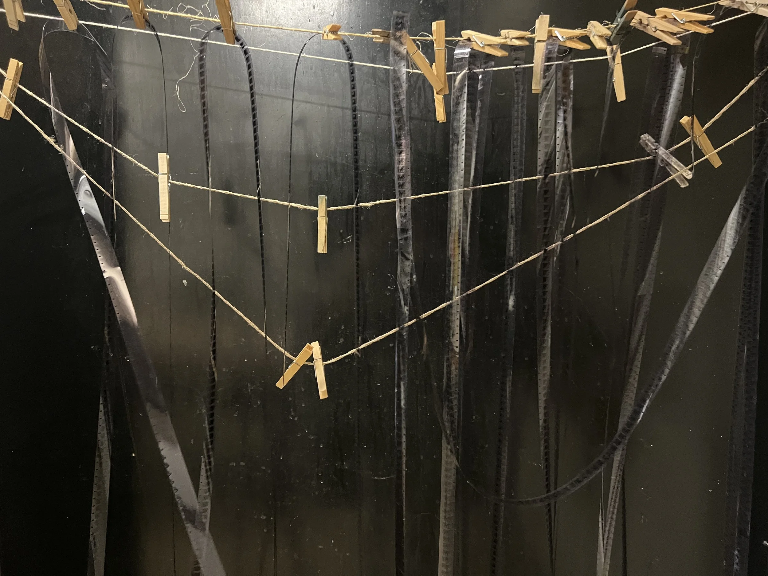 Once the reconstructed 3D environment was rendered digitally, I used a 16mm Bolex camera to shoot footage of the digital visuals. I then hand-processed the 16mm film footage in a darkroom. During this manual processing, scratches and other forms of contamination were introduced to the film. I digitized the 16mm film using a scanner and identified the damaged segments in the digital files. I used Photoshop AI tools to edit the ruined footage and exported the results to Runway AI for animation. Runway AI was also used to stitch the various clips together, creating smooth transitions between them.