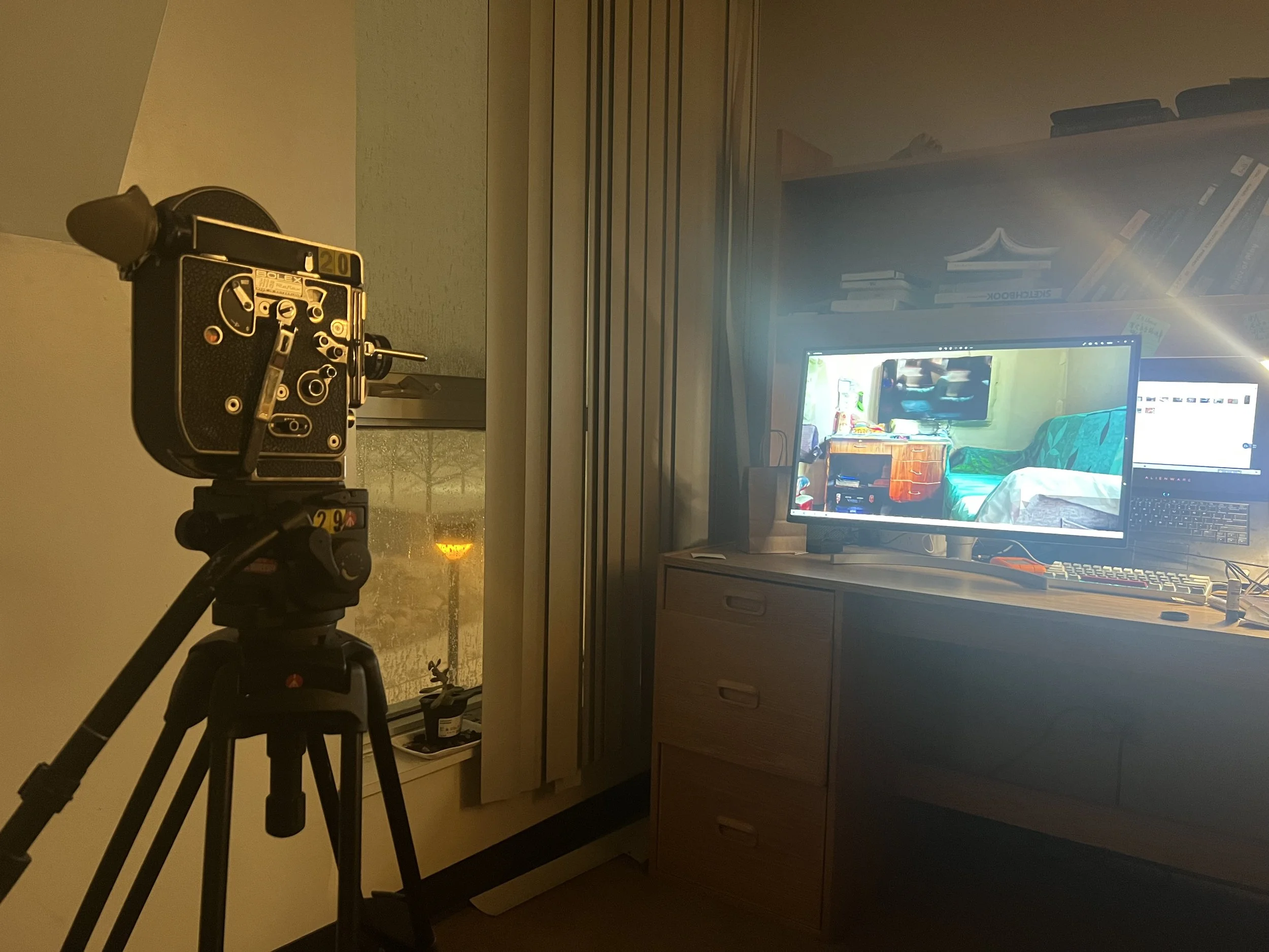 Process of capturing re-constructed 3D environment and hand-processing 16mm film